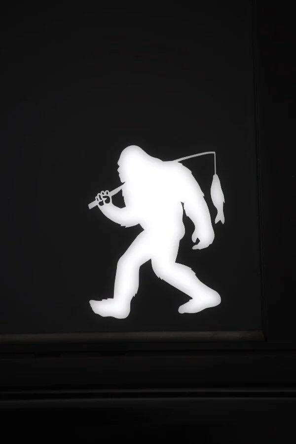 Ok, in the 3 Bigfoot hunts I’ve been on I’ve never seen the Big One catch a fish so I’m not sure if that’s a spinning or bait casting setup he’s using. Scientifically if this sticker were to scale, and it’s not it’s only 5 inches tall, but if I’d happen to snap a photo of Bigfoot bringing his catch back to clean and possibly grill with you know asparagus, some carrots, sprigs of basil and some nice creamy sauce, at scale with the average Bigfoot angler being about 8 feet tall and weighing 800-1,000 pounds that fish he’s bringing home for possibly a fish fry with his family, would be like 3 feet long and close to 30 pounds, if my Bigfoot to Human math is correct. I have a few of these decals, I had more but I put a couple of them on the preferred truck of Bigfoots everywhere, Tundra, so grab them quick. Ships Free