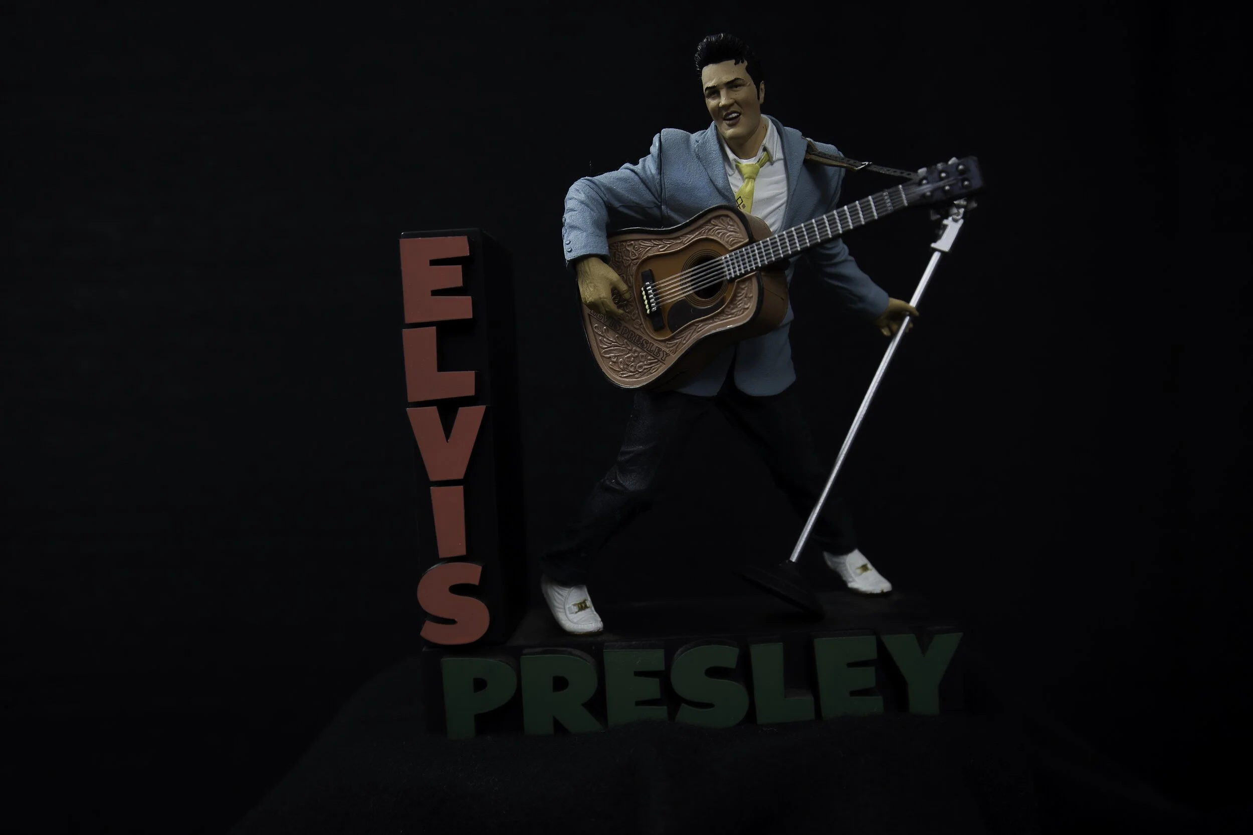 I don’t know what period of Elvis this Elvis is, I do know it’s a McFarlane model which may mean something to someone not me. I cleaned off some of the dust but left some on so as to not be false advertising, and for some reason he leans forward a bunch even when the spike thing in the bottom of his shoe is in the spike thing hole… Ships free